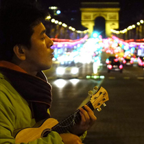 シャンゼリゼ通りでオーシャンゼリゼを弾き語る