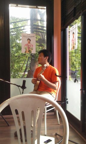 旅すがら今回のように15人のカフェでのチャリティ演奏もします。