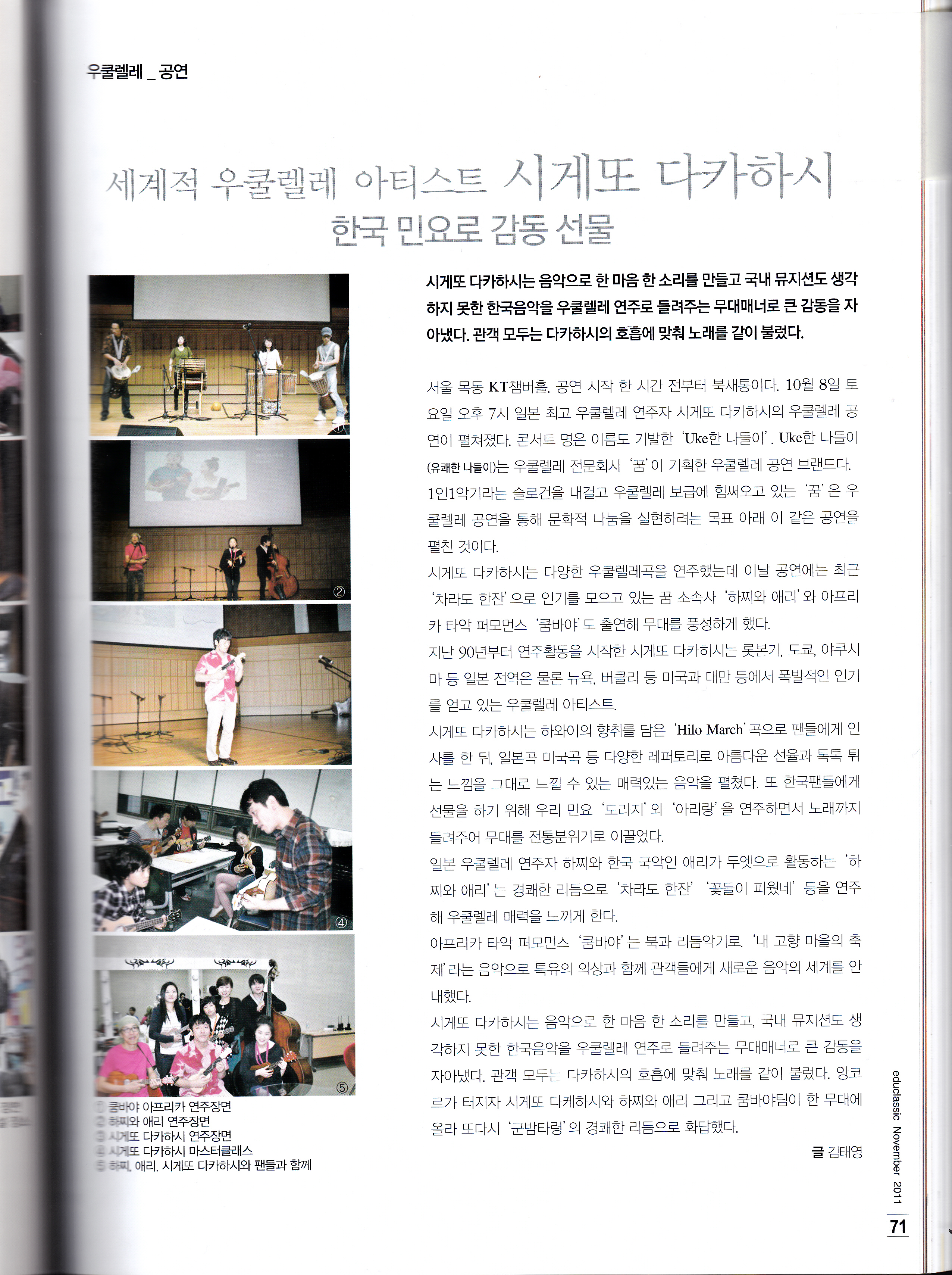 韓国ではクラシック教育の雑誌にウクレレコンサートの様子が