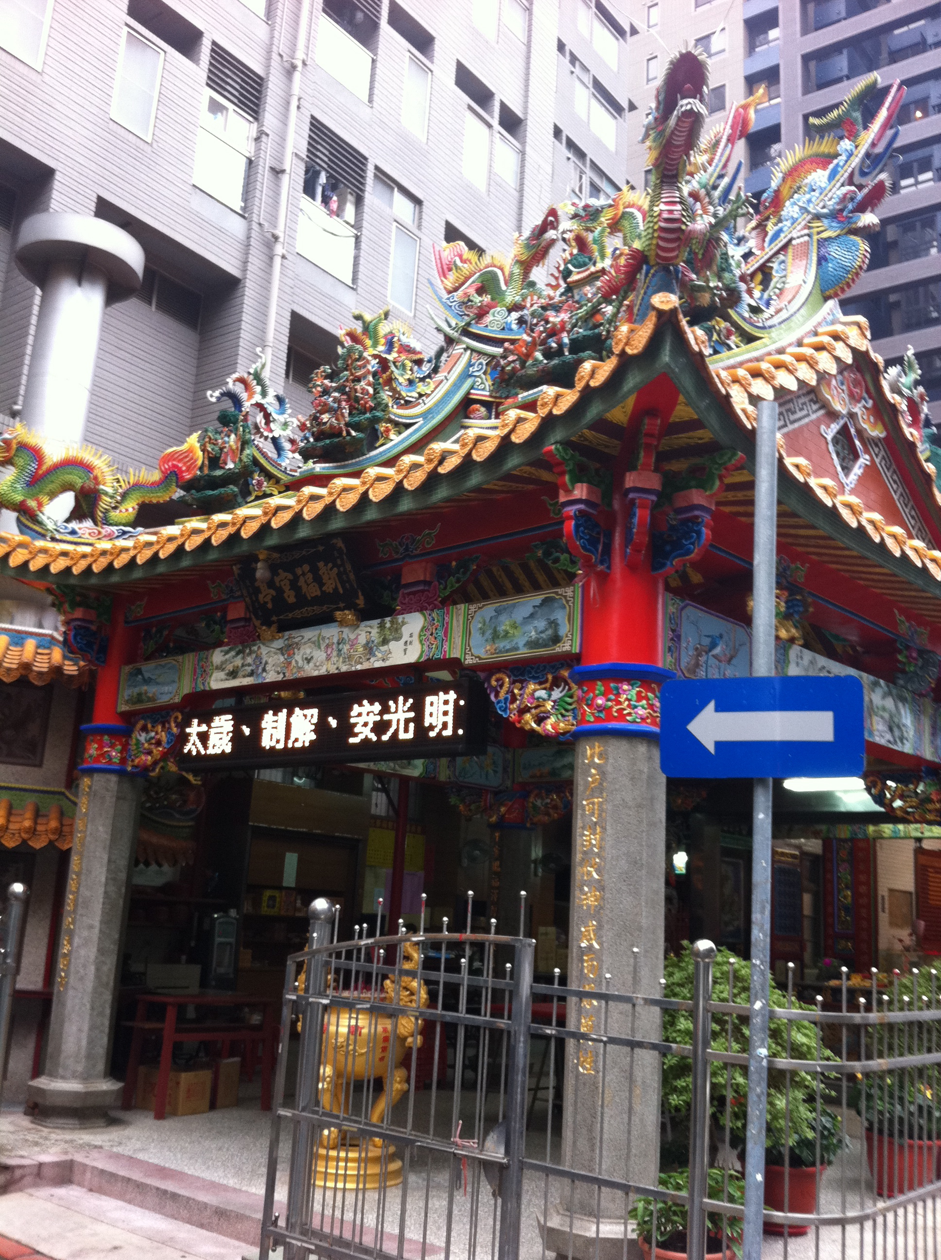 おそらく道教のお寺だと思いますが、 多くの龍の像が屋根にあり、琉球や中国の文化と 相通ずる色彩の屋根や建物があります。 日本のお寺は比べると質素ですね。