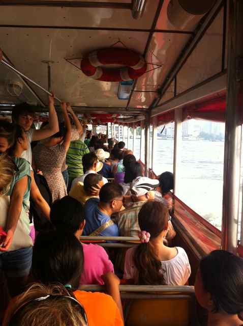 現地の人々と観光客(主に白人)を満載した船でタクシン駅に向かった。